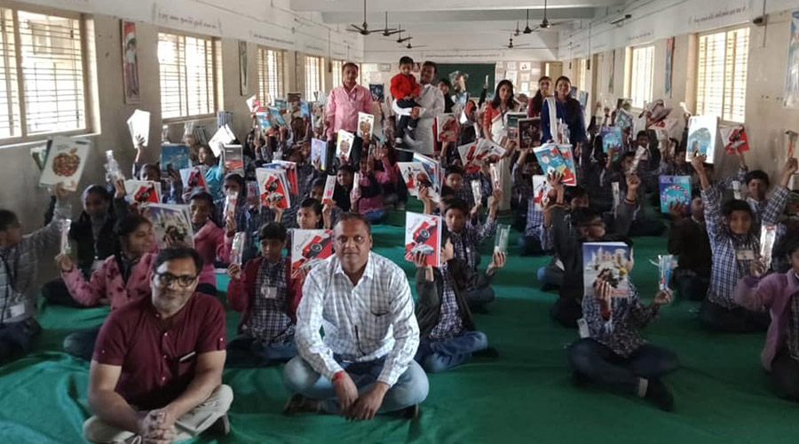 Distributes notebooks and stationary to poor children in government school